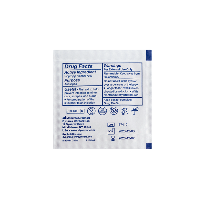 DynaSafety Sterile Alcohol Prep Pads are designed to safely cleanse and prepare skin prior to injection or venipuncture. These premium-quality Pads are saturated with 70% isopropyl alcohol to help fight bacteria and germs and reduce the risk of contamination. These 1-ply, non-woven Prep Pads are soft and absorbent for improved effectiveness. The Pads are designed for single use and sealed in sterile pouches for optimal hygiene.