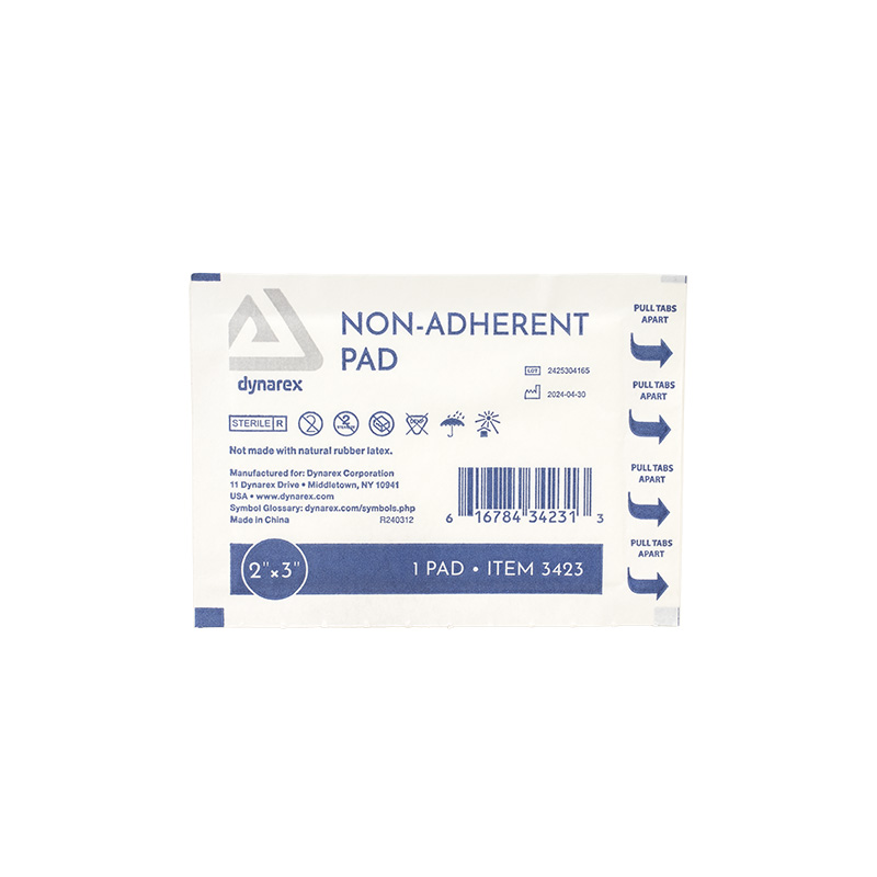 Dynarex DynaSafety Non-Adherent Pads feature a highly absorbent inner layer to help prevent leakage. These sterile, cotton/polyester pads are designed to effectively protect cuts, scrapes, and burns. These Pads are constructed to minimize adherence to the wound.