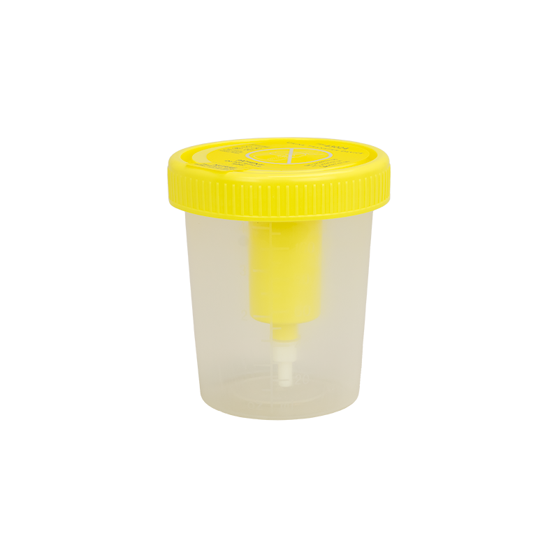 - Plastic containers designed for safe collection and transportation of urine samples