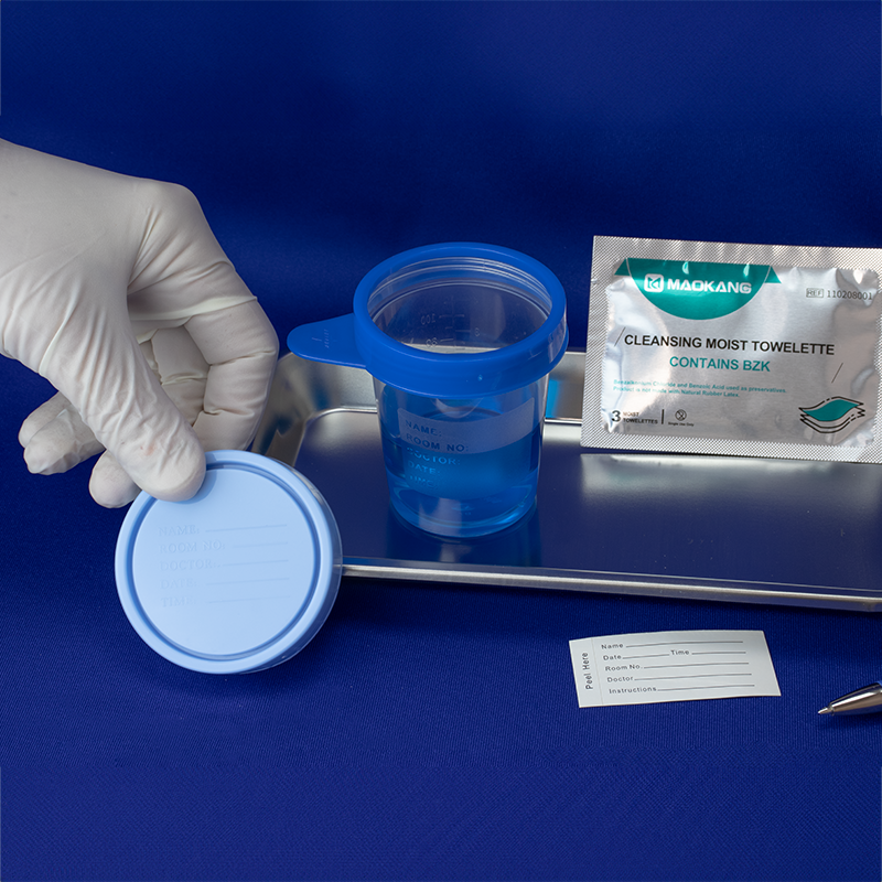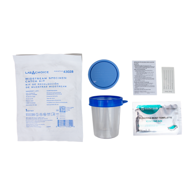 The Dynarex LabChoice Midstream Specimen Catch Kit contains essential components for efficient and hygienic urine collection. The sterile Kit includes a transparent specimen container with a protective collar and leak-resistant cap. The Kit includes three BZK towelettes for optimal hygiene.