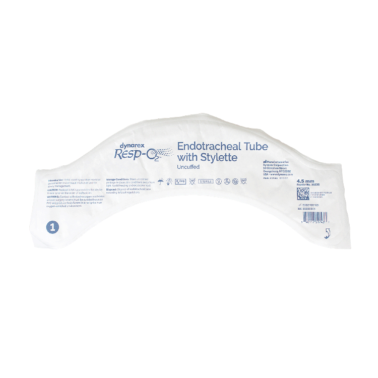 Dynarex Resp-O2™ Endotracheal Tubes are high-quality plastic tubes designed to safely and effectively deliver higher concentrations of oxygen and medications directly into patients’ lungs.