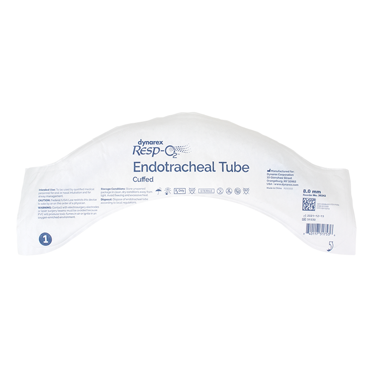 Dynarex Resp-O2™ Endotracheal Tubes are high-quality plastic tubes designed to safely and effectively deliver higher concentrations of oxygen and medications directly into patients’ lungs.