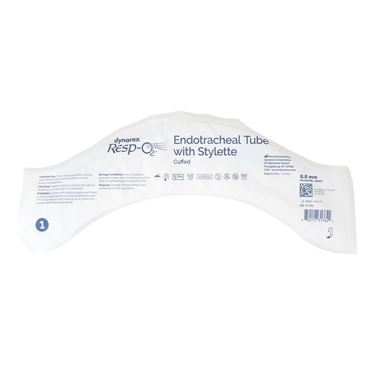 Dynarex Resp-O2™ Endotracheal Tubes are high-quality plastic tubes designed to safely and effectively deliver higher concentrations of oxygen and medications directly into patients’ lungs.