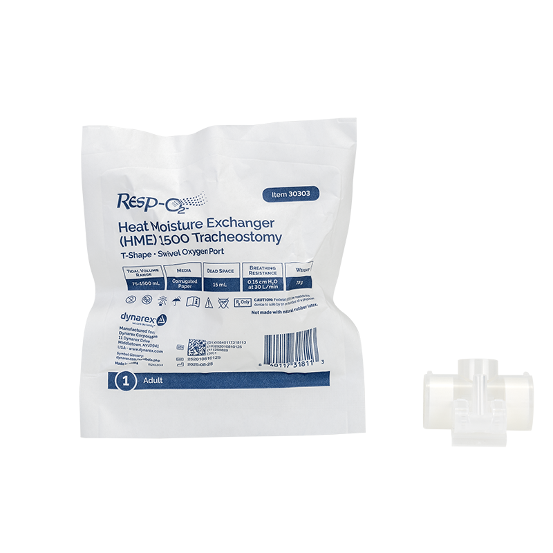 Dynarex Resp-O2 Trach HMEs are single-use, disposable respiratory devices designed to provide humidification for tracheostomy patients. Quantity per Case: 50