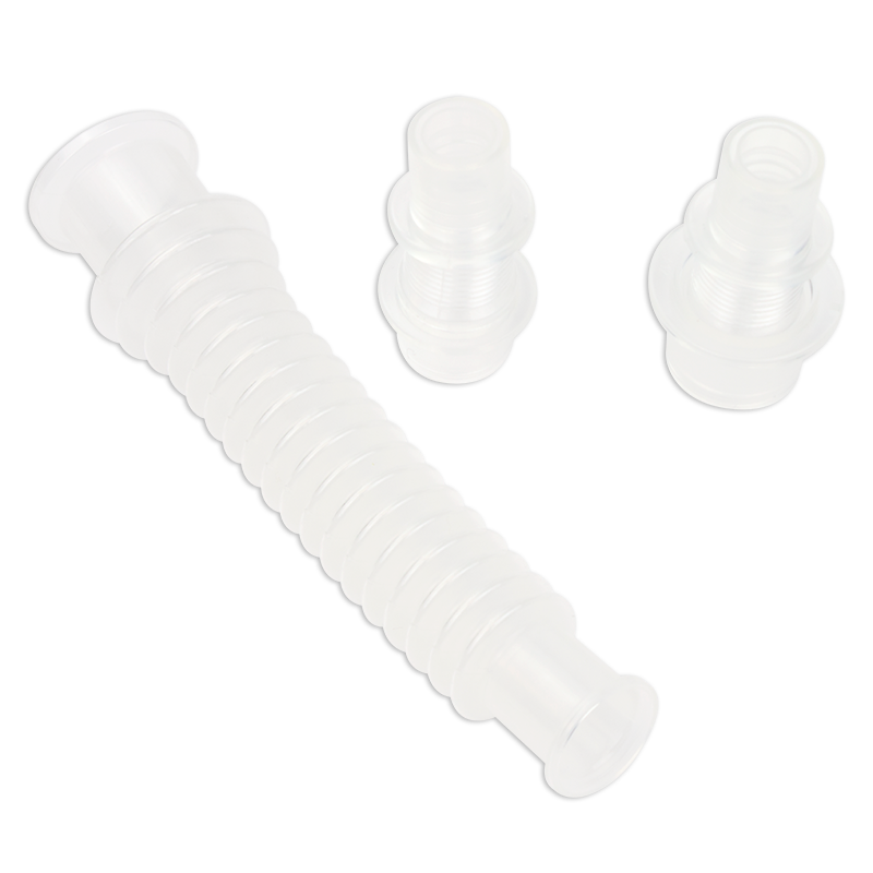 Resp-O2™ Flex Tubes/Flex Connectors are designed to extend vertical circuits and heat moisture exchangers (HMEs) to help enhance system flexibility and reduce strain on tracheostomy connections. The lightweight, pliable construction supports improved patient mobility and comfort during respiratory therapy. Not made with natural rubber latex or DEHP, these connectors are suitable for use in homecare environments and other respiratory care settings.