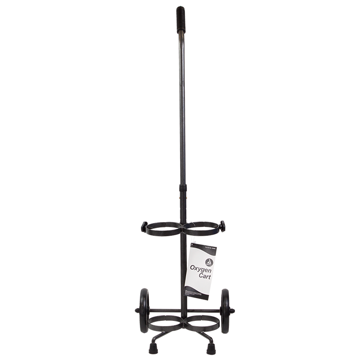 Dynarex Resp-O2™ Oxygen Tank Carts are designed to safely and reliably carry and support D- and E-sized oxygen cylinders. The sturdy frame is constructed from durable carbon steel with an 80-lb capacity. The cylinder cart is available in single-tank and dual-tank varieties and features a height-adjustable handle for easy customization.