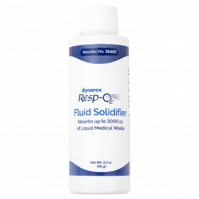 Dynarex Resp-02™ Fluid Solidifiers are designed to be used in conjunction with suction canisters to provide safe and effective containment of biohazardous liquids. The Fluid Solidifier is formulated to quickly turn secretions into a gel, greatly reducing the risk of exposure to contaminated bodily fluids and aerosolized bloodborne pathogens. The Fluid Solidifier allows for the safe transport of infectious waste and eliminates the risk of spills and sprays.