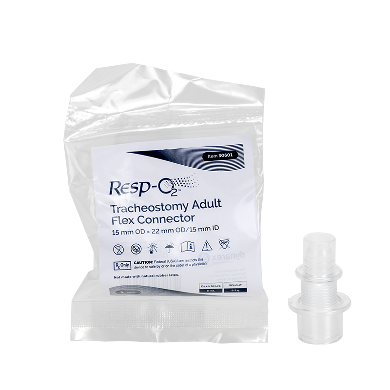 Resp-O2™ Flex Tubes/Flex Connectors are designed to extend vertical circuits and heat moisture exchangers (HMEs) to help enhance system flexibility and reduce strain on tracheostomy connections. The lightweight, pliable construction supports improved patient mobility and comfort during respiratory therapy. Not made with natural rubber latex or DEHP, these connectors are suitable for use in homecare environments and other respiratory care settings.