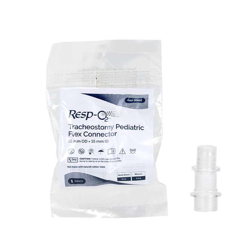 Resp-O2™ Flex Tubes/Flex Connectors are designed to extend vertical circuits and heat moisture exchangers (HMEs) to help enhance system flexibility and reduce strain on tracheostomy connections. The lightweight, pliable construction supports improved patient mobility and comfort during respiratory therapy. Not made with natural rubber latex or DEHP, these connectors are suitable for use in homecare environments and other respiratory care settings.