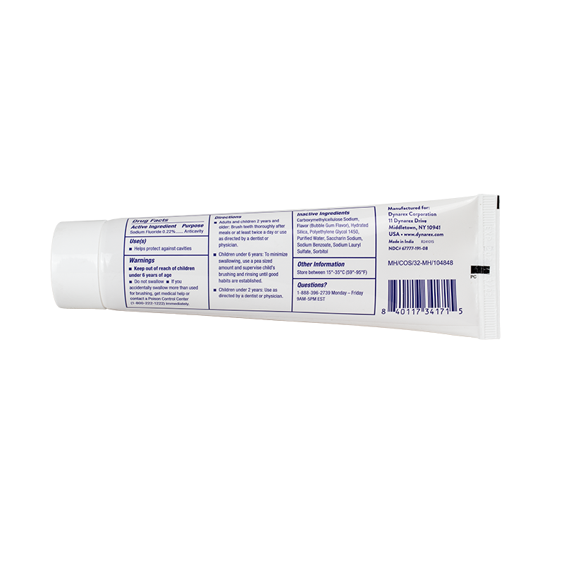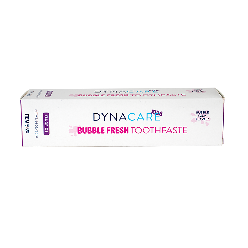DynaCare Bubble Fresh Toothpaste is designed to promote dental health while making brushing fun for kids. Available with fluoride for added cavity protection, or without fluoride for gentle cleaning of sensitive teeth and gums. Its kid-friendly bubblegum flavor encourages consistent dental hygiene.