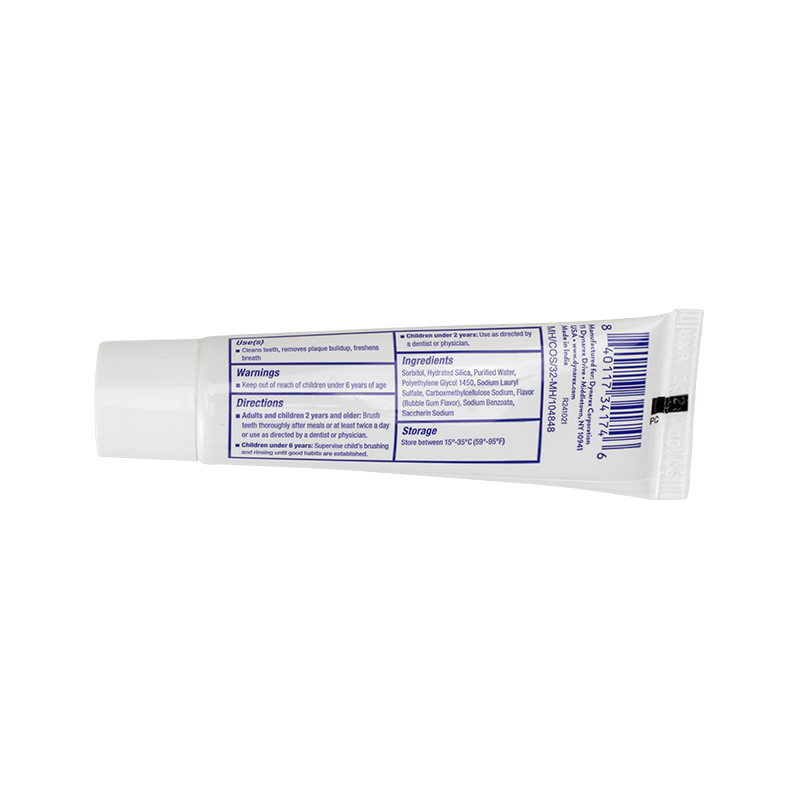 DynaCare Bubble Fresh Toothpaste is designed to promote dental health while making brushing fun for kids. Available with fluoride for added cavity protection, or without fluoride for gentle cleaning of sensitive teeth and gums. Its kid-friendly bubblegum flavor encourages consistent dental hygiene.