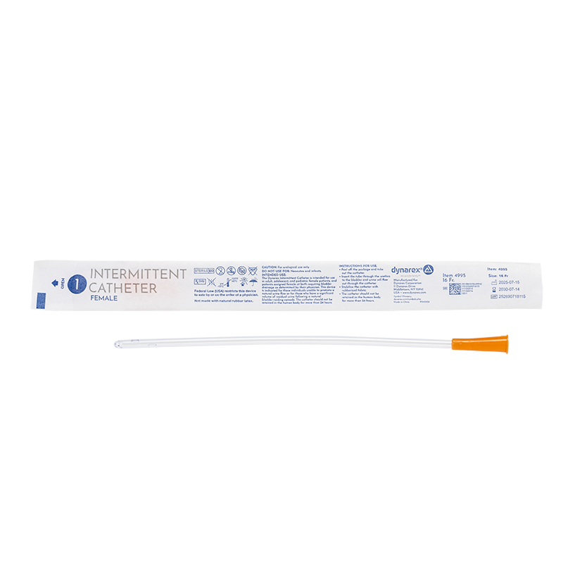 Dynarex Intermittent Catheters are high-quality PVC catheters designed to help manage bladder drainage. The Catheters feature smooth tips for improved comfort and offset drainage eyelets to help facilitate flow. The Catheters are color-coded for easy size identification and come in both male and female varieties.